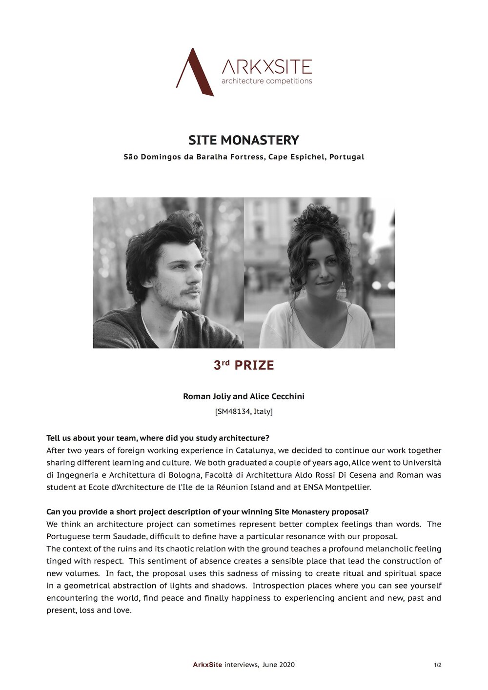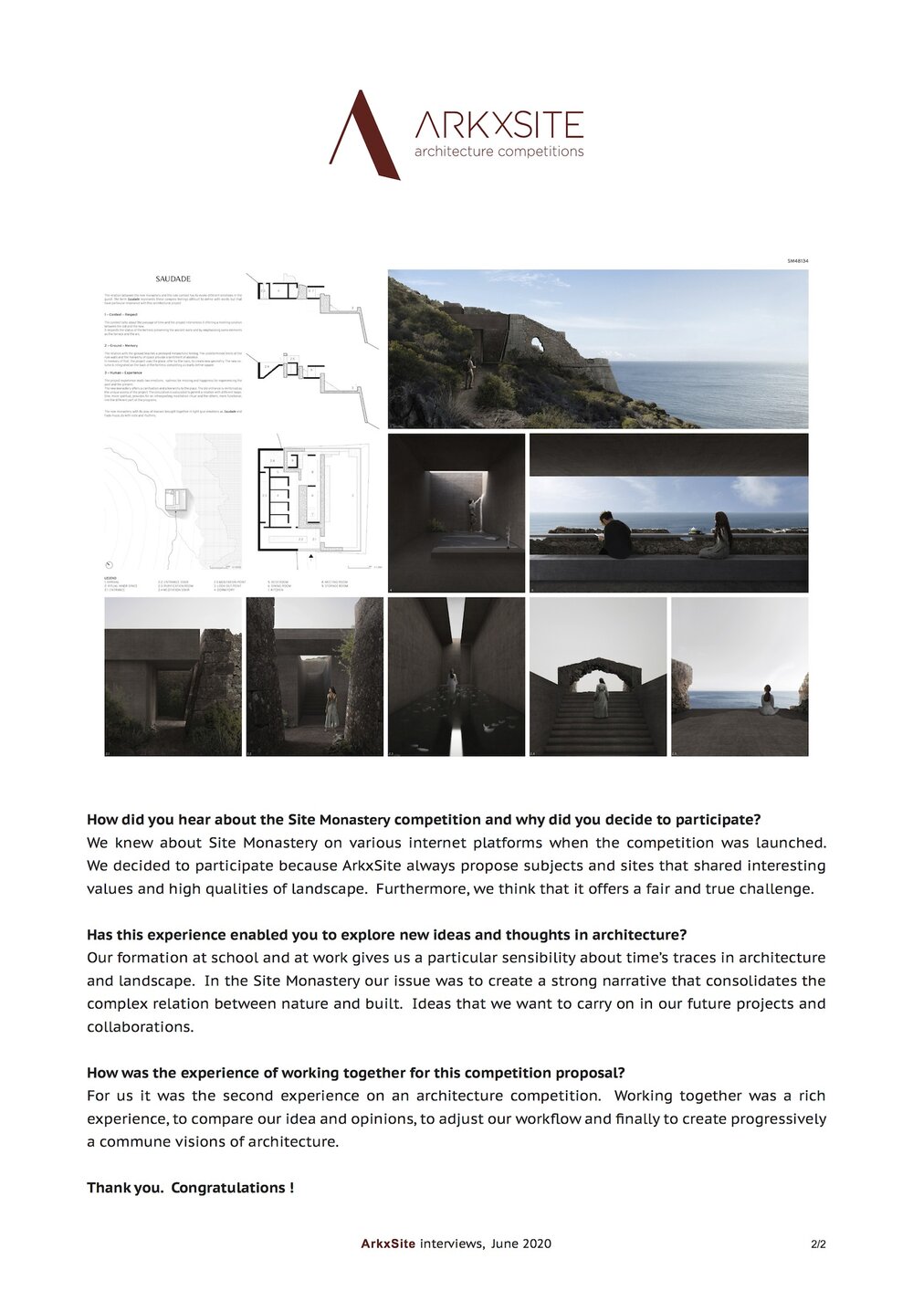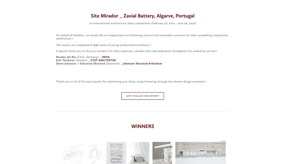 On behalf of ArkxSite, we would like to congratulate the following winners and honorable mentions for their compelling competition submissions !