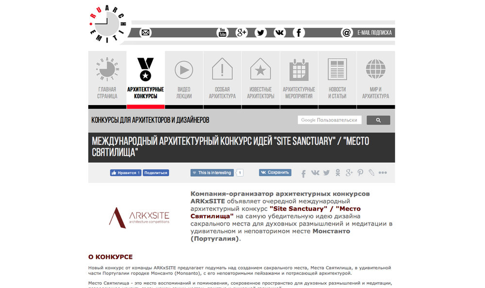 Site Sanctuary _ Thank You, Architime _ Russia (Media Partner) For Publishing The New Competition !