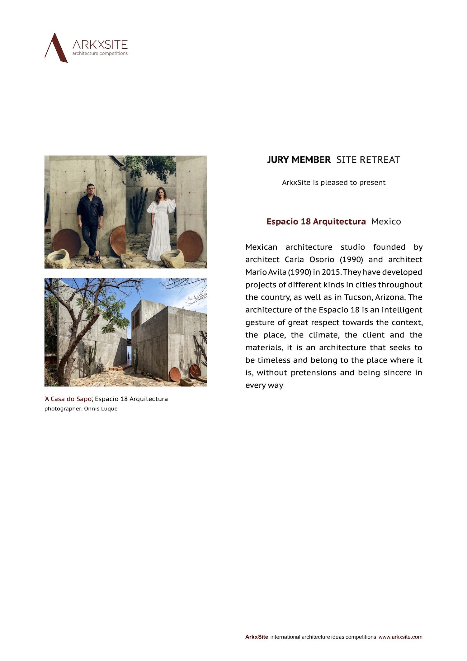 June 29, 2022 ARKxSITE siteretreat SITE RETREAT _ We Are Excited To Announce That Carla Osorio + Mario Avila Of Espacio 18 Arquitectura (Mexico) Have Agreed To Become Jury Members For The New Competition ! June 29, 2022 ARKxSITE siteretreat Thank you Carla + Mario for your interest !link Recommended linksQuel Site De Paris Sportif ChoisirTrang Cá đọ Bóng đáBest Crypto Casinos Malaysia ARKxSITE