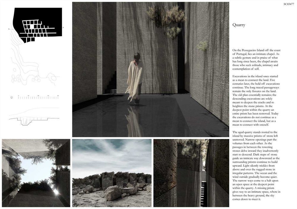 The project honors the original traces of the quarry in a restrained intervention, which is born in the same way the quarry was – through subtraction of matter. This subtraction generates an ascending space that, combined with overhead light, evokes the need to meditate.