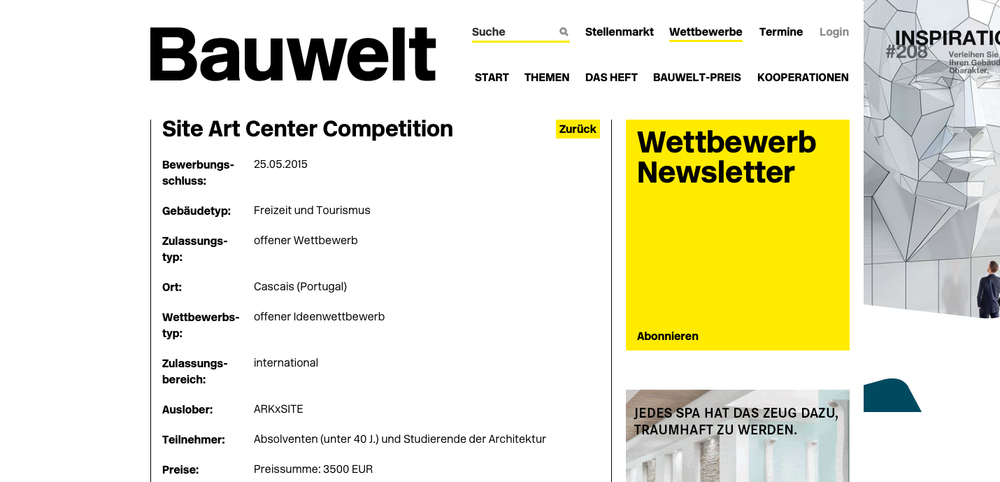 Past competition _ Site Art Center _ Thank You To Wettbewerbe Aktuell _ Germany (Media Partner) For Publishing The Competition Results!
