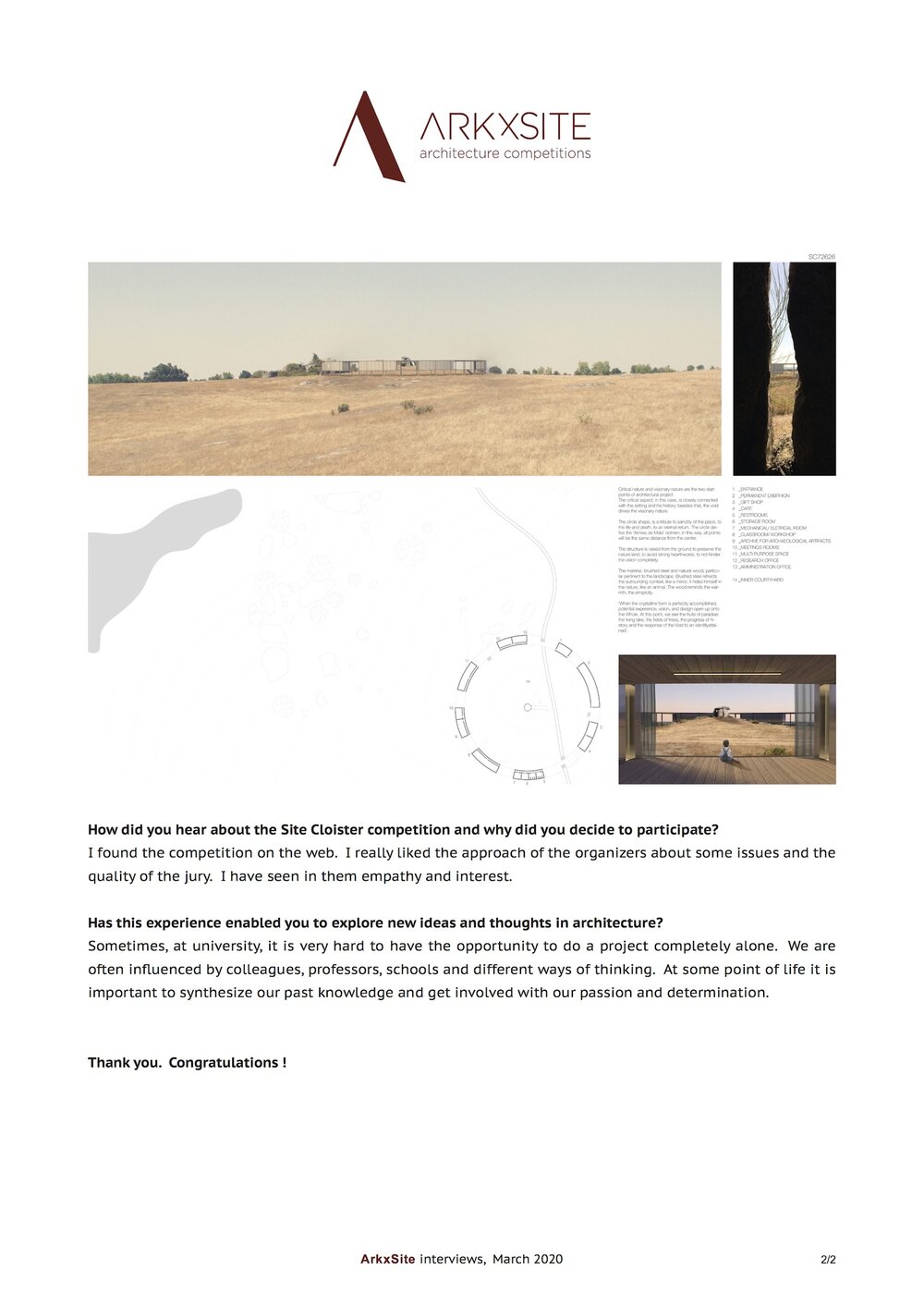 On behalf of ArkxSite, we would like to congratulate the following winners and honorable mentions for their compelling competition submissions !