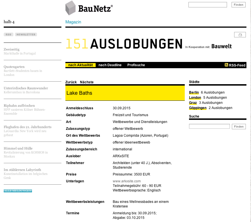 Past Competition _ Site Lake Baths _ Thank You To Wettbewerbe Aktuell _ Germany (Media Partner) For Publishing The Competition Results!
