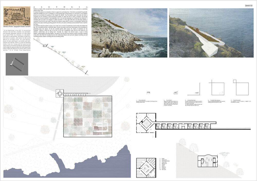 This proposal establishes a tension between enclosure and revelation. This tension manifests in a play of proximity of the intervention within the ruined fabric of the monastery. It is further tuned through mass, and light. A marvellous, episodic proposition - which creates a strong narrative encounter with the site. Architecture - in its highest form - allows us to see ourselves encountering the world, and each other. This proposition speaks of solitude, loss, searching and love.