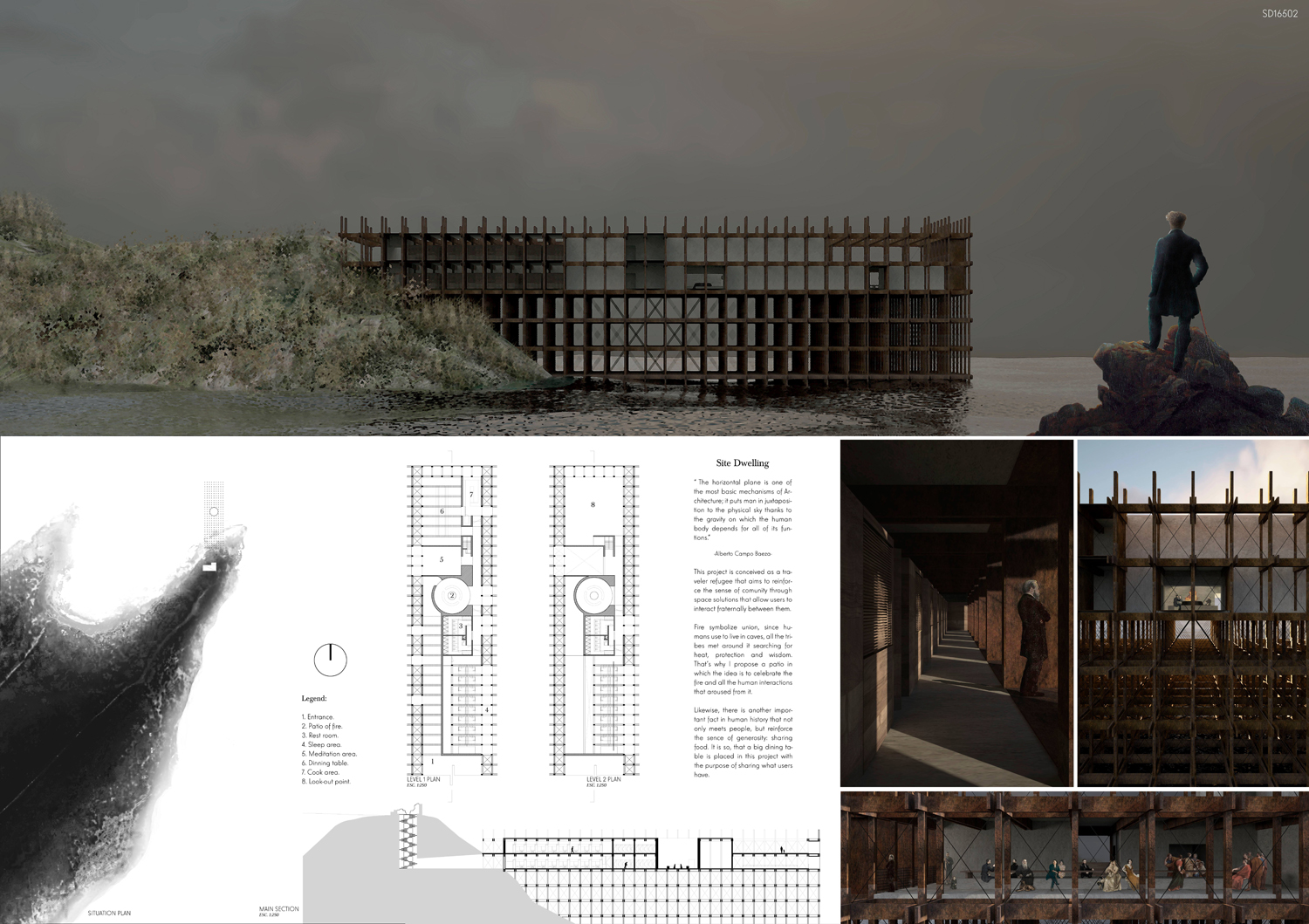 In our opinion this project is the best of a series of poetic projects we reviewed during the competition, belonging more in a way to the world of utopia and the purely theoretical ideas. However, we greatly appreciate that with very definitive gestures it was able to show us in a very clear way that a physical intervention in the site also has a very poetic side in the handling of the scale, the movement of the user through the site and the contrasts generated between the site and the intervention. It is a simple project, very well articulated under the logic of the very rules in which the project moves, it is a project of good quality in terms of exploration and with a very honest representation.