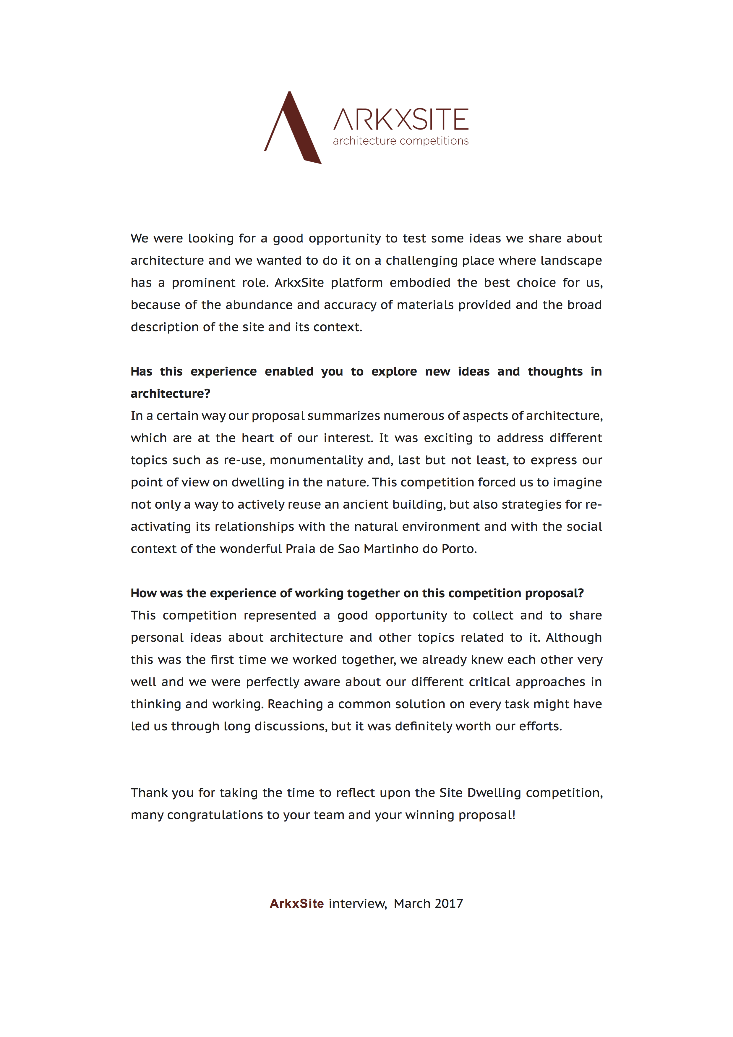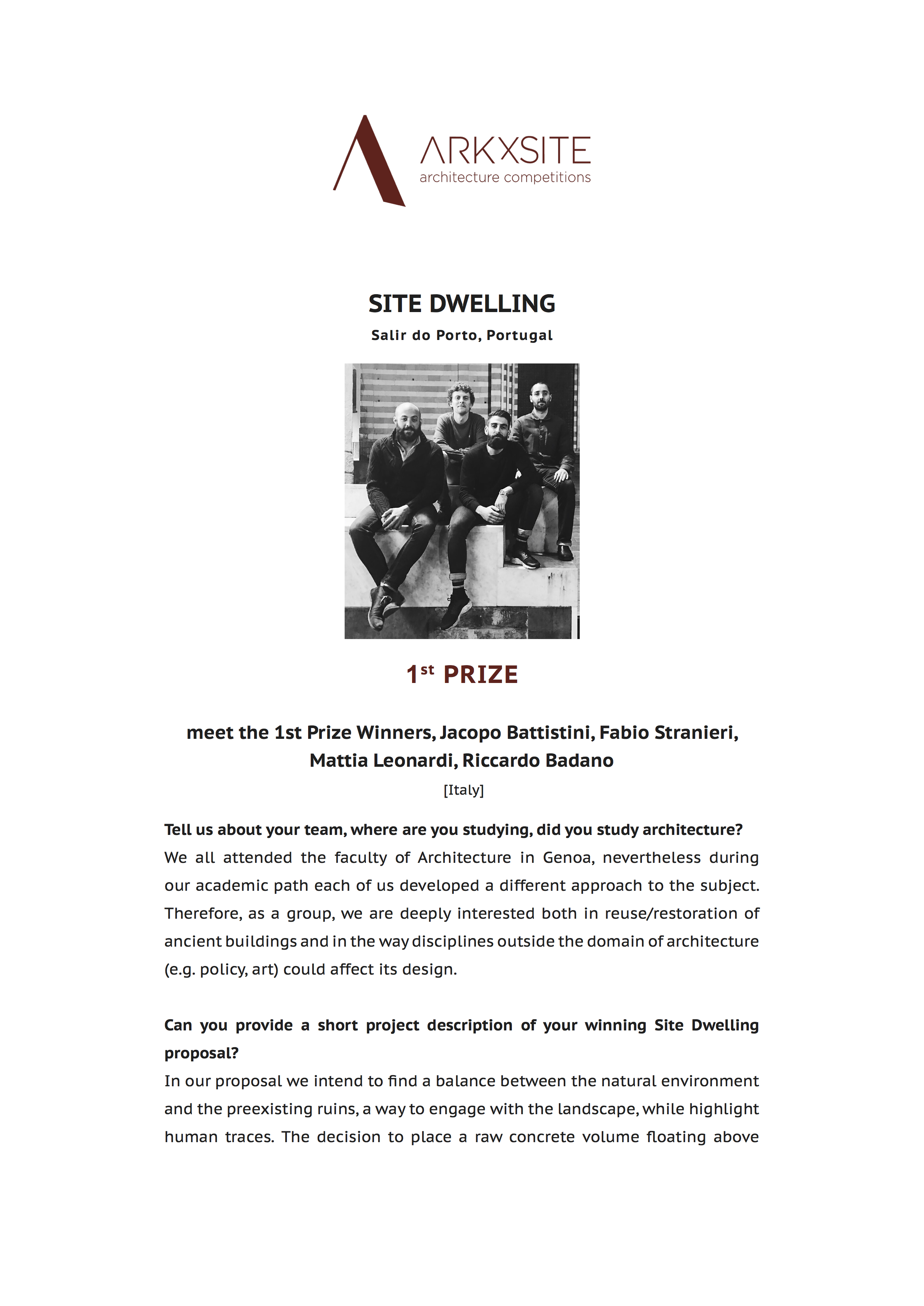 On behalf of ArkxSite, we would like to congratulate the following winners and honorable mentions for their compelling competition submissions!