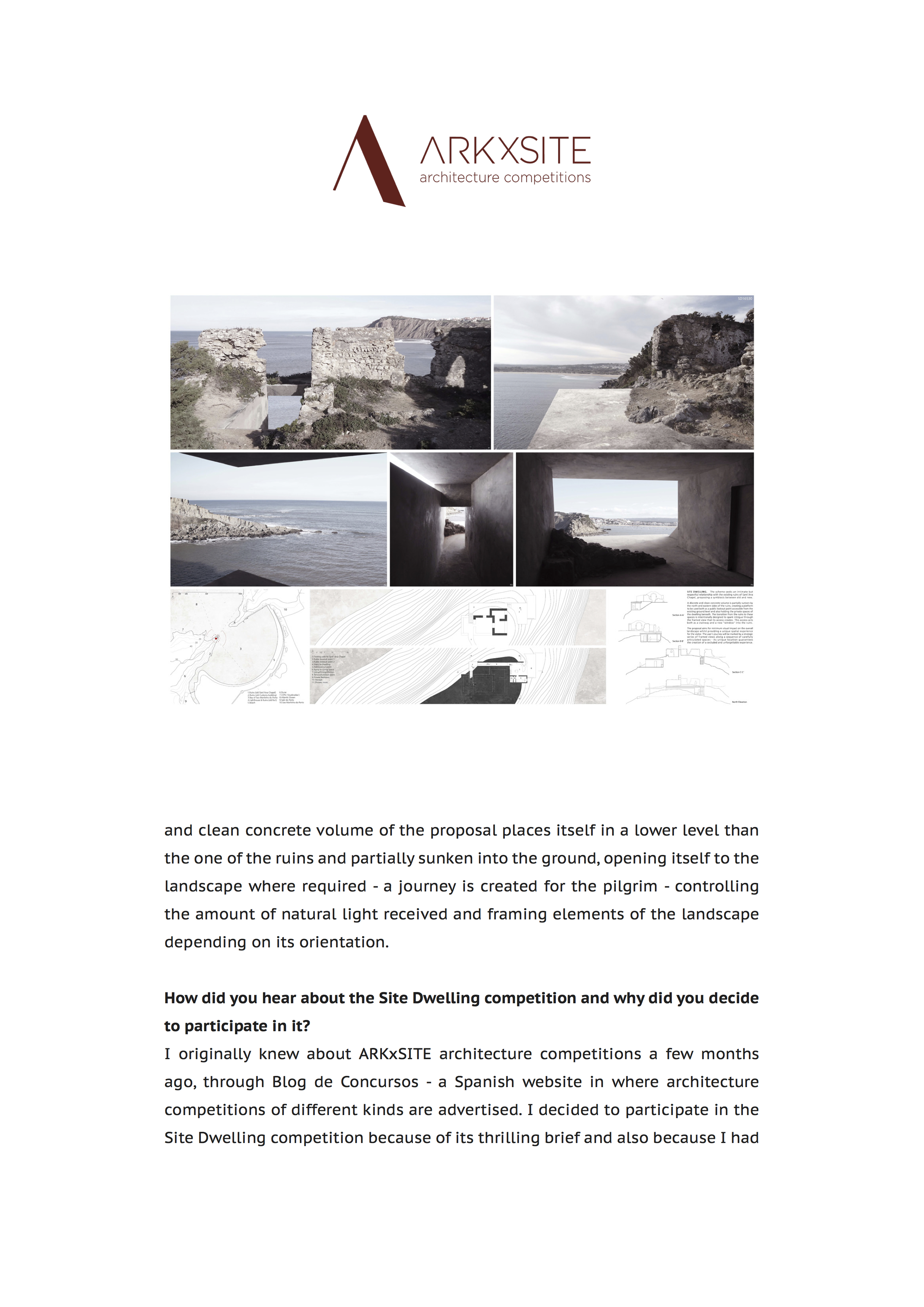 This project generates a passage around and under the existing ruins almost without altering them, rather altering the site. We would’ve liked to see a bit more interaction with the ruins, and more practical solutions regarding the use and security of the site. However it is simple and measured in its architectural elements, perhaps the complexity of building it being its weakest part, since we believe it leaves many open limits. Maybe that’s hard to measure in a competition, maybe it’s a good thing, to leave the project open in many aspects so that it could evolve.