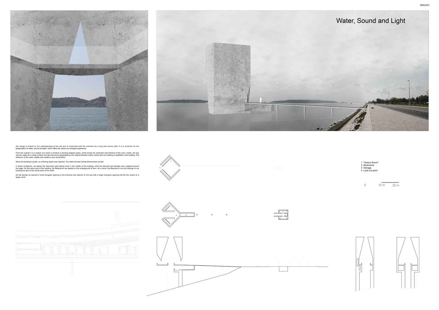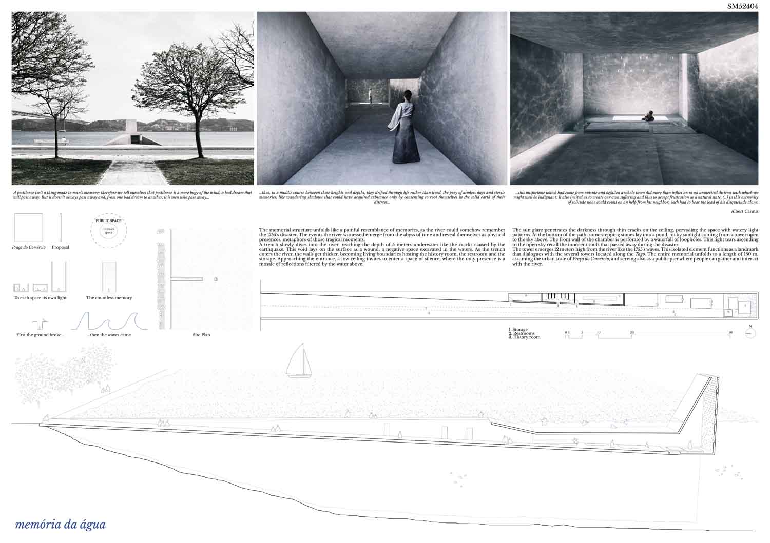 ‘Objeto encalhado’ is a subtle and well developed proposal cleverly building on a language of historic maritime infrastructure. The ‘inhabitable sculpture’ provides a sequence of engaging and architecturally ambitious spaces conveying an appropriate mood of calm contemplation.