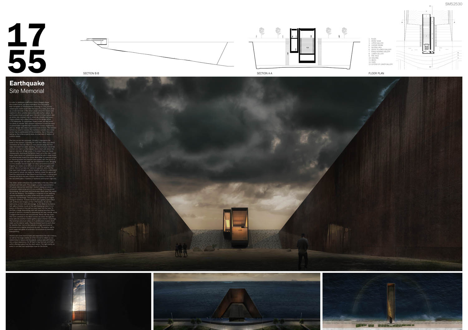 The project demonstrates a very sensitive approach to the site. It designs a new topography and it offers the citizens not only a memorial, but also a real gathering place. The idea display a strong capacity for synthesis, because it contains simplicity, precision and a strong soul.