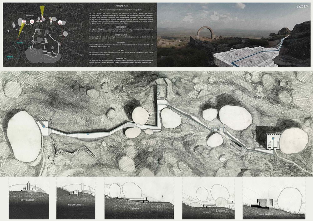 For me this project represents a great idea on topography, interaction with positive and negative spaces through the site. The way natural light enters into spaces created with the contention of site and natural formations are lovely. The idea of a walk that have moments of exposure but enclosure, moments of light but shade is powerful and poetic.
