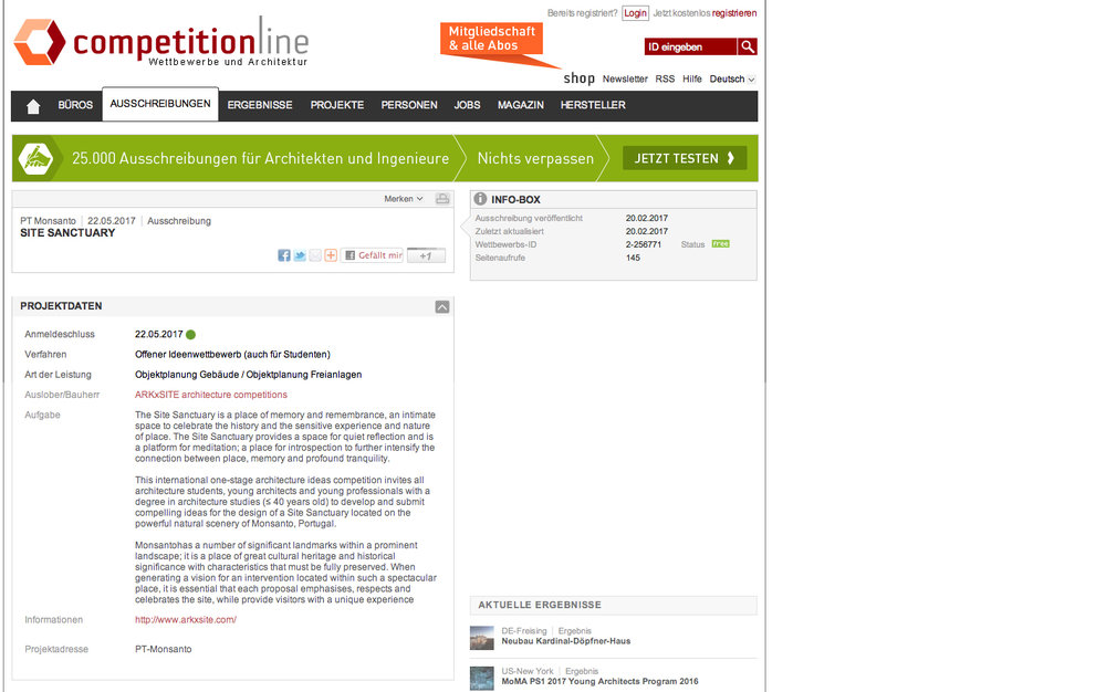 This international one-stage architecture ideas competition invites all architecture students, young architects and young professionals with a degree in architecture studies (≤ 40 years old) to develop and submit compelling ideas for the design of a Site Sanctuary located on the powerful natural scenery of Monsanto, Portugal.