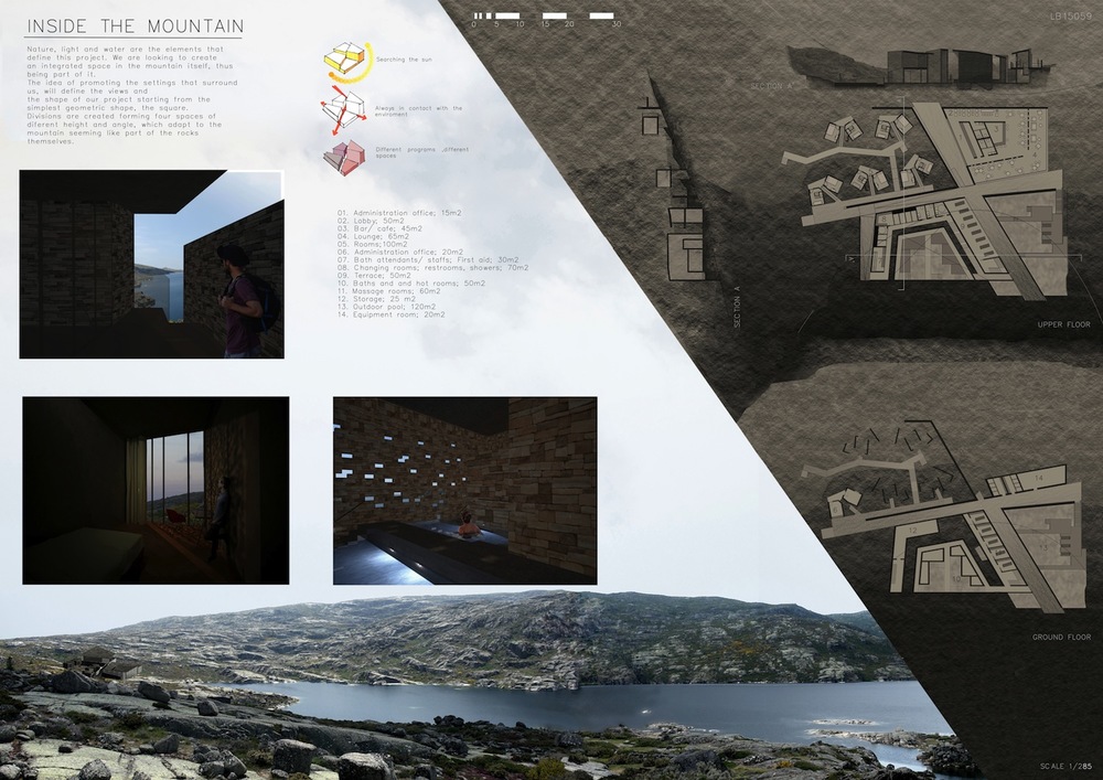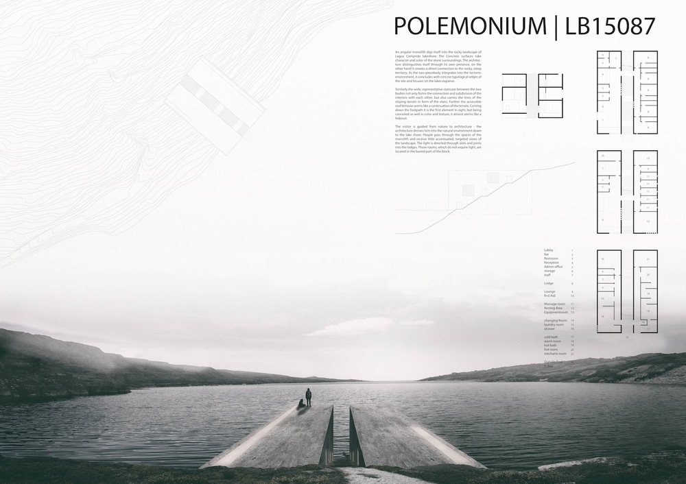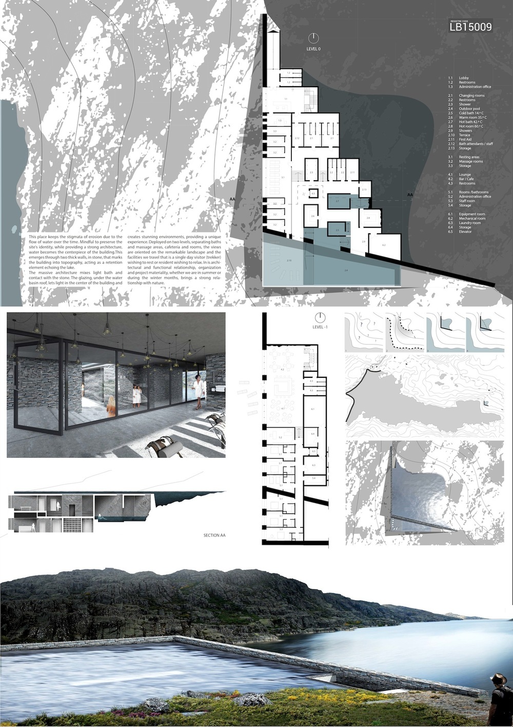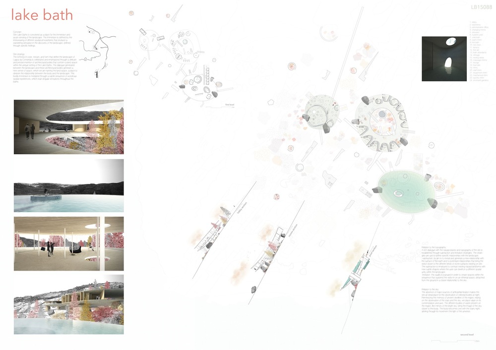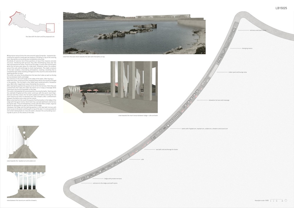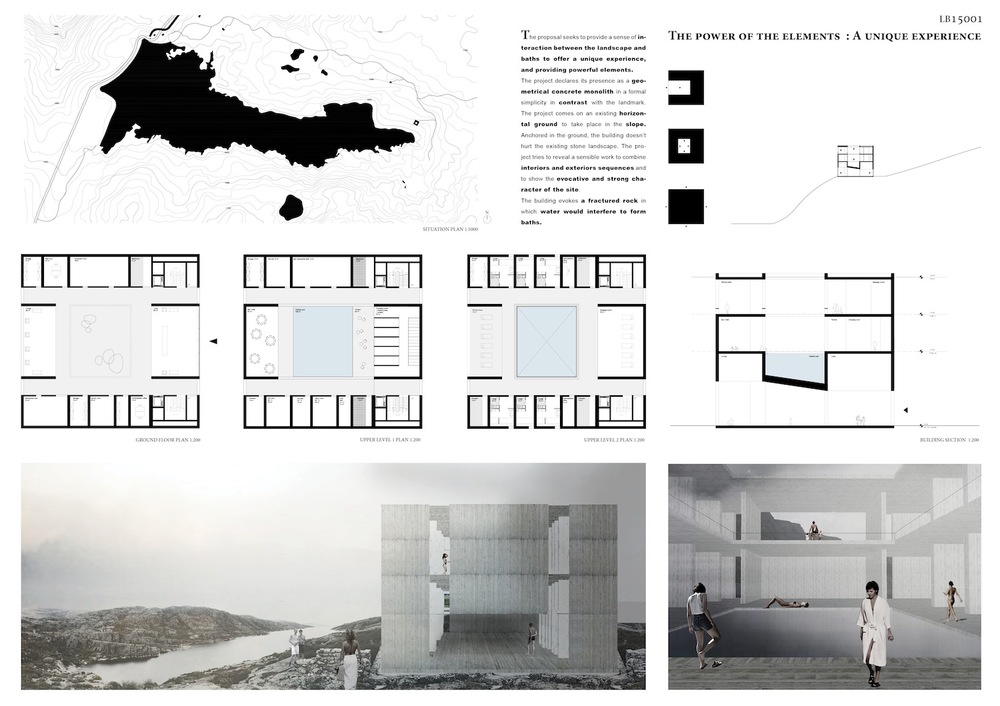 The project assumes a distance of the nature and a search of formal affirmation over the landscape at the territorial scale. On the contrary, at the scale of uses it seeks to approach nature by withdrawing into itself leaving place to the preeminence of the natural. This ambiguity added to a strict and clear functional definition, produces an object of great conceptual force.