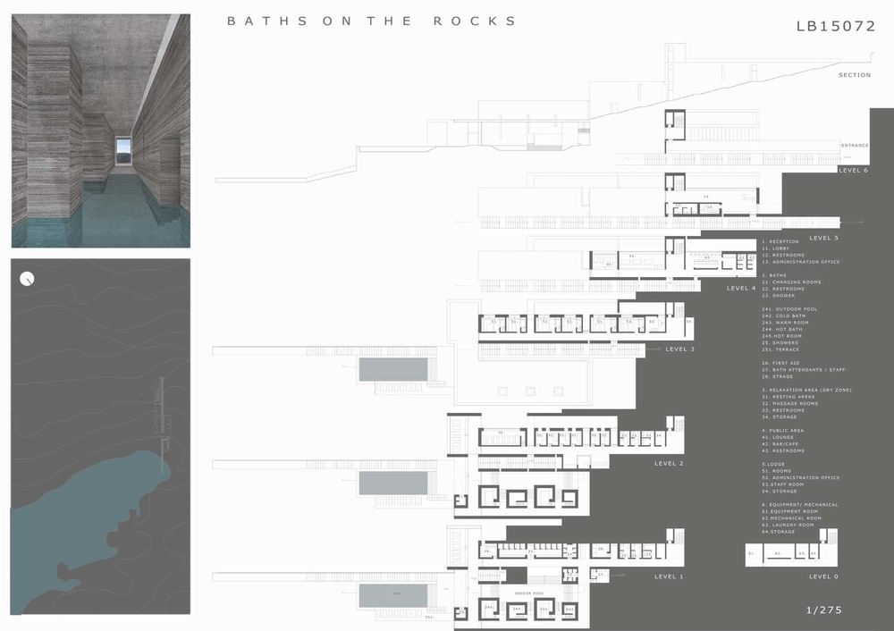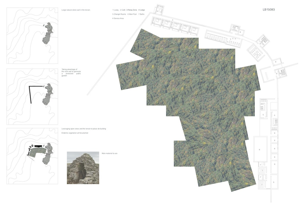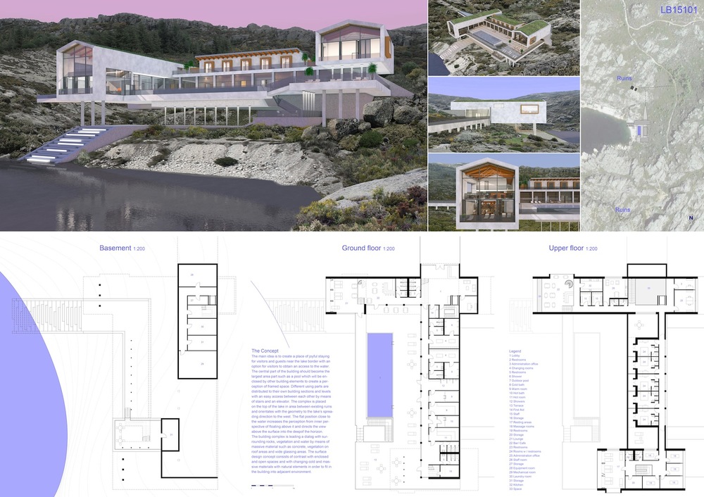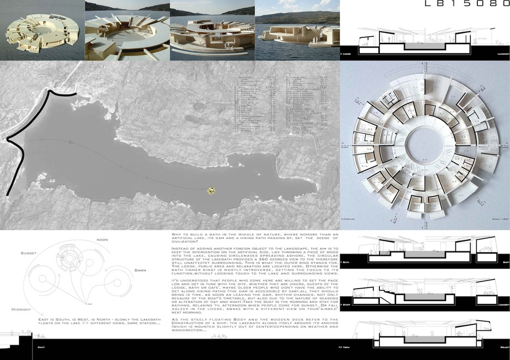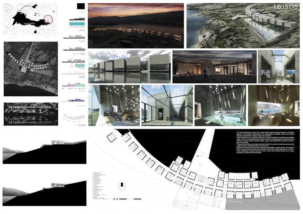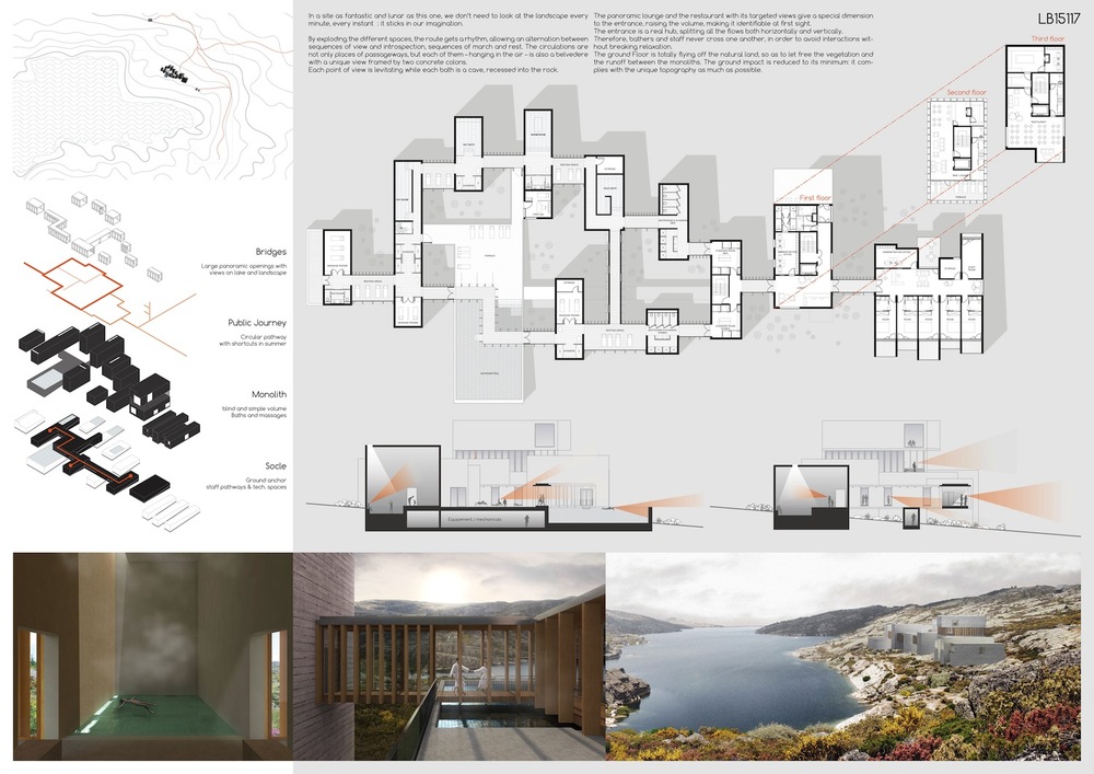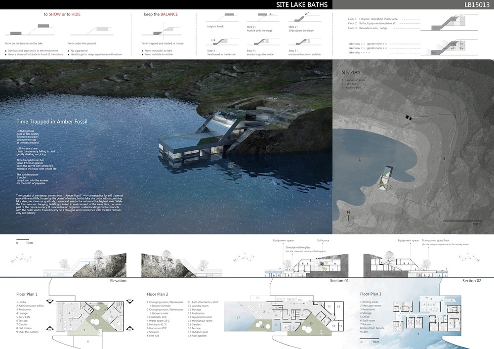 The project assumes a distance of the nature and a search of formal affirmation over the landscape at the territorial scale. On the contrary, at the scale of uses it seeks to approach nature by withdrawing into itself leaving place to the preeminence of the natural. This ambiguity added to a strict and clear functional definition, produces an object of great conceptual force.