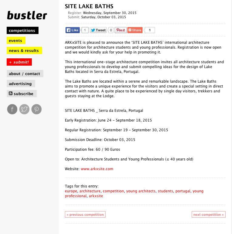 This international one-stage architecture competition invites all architecture students, young architects and young professionals with a degree in architecture studies (≤ 40 years old) to develop and submit compelling ideas for the design of Lake Baths located in Serra da Estrela, Portugal.